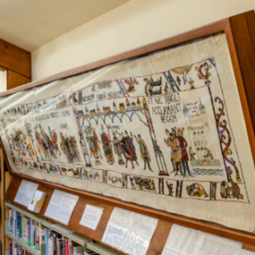 Alderney's Bayeux Tapestry Finale is a modern, community-stitched embroidery that imaginatively completes the original Bayeux Tapestry - a chapter many experts believe was missing/incomplete.